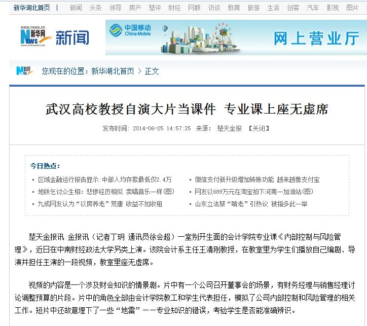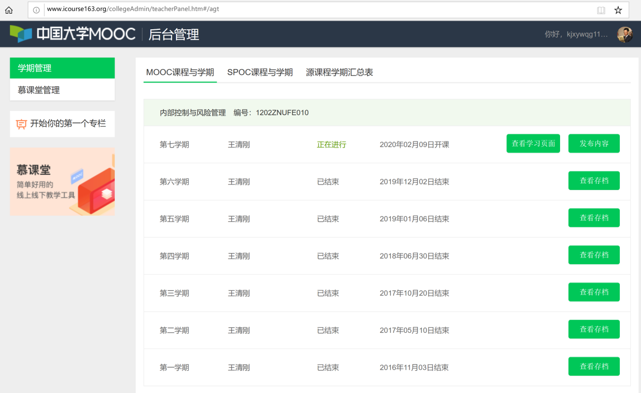 为有效应对新型冠状病毒肺炎疫情造成的全国高校延期开课,响应教育部、省教育厅关于疫情防控期间做好高校在线教学组织与管理的工作要求,服务各高校师生及社会学习者多样化学习的需求,做到“延迟开学不停教不停学”,365英国官网以王清刚教授为首的课程团队于2月9号在中国大学MOOC启动了《内部控制与风险管理》MOOC课程的第七期线上教学活动。课程开课仅3周选课人数已过万人,很多学校直接基于该MOOC课程开展线上教学,充分体现了教育信息化和数字化资源优势。