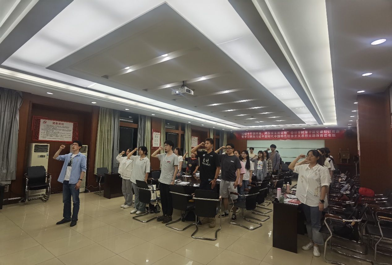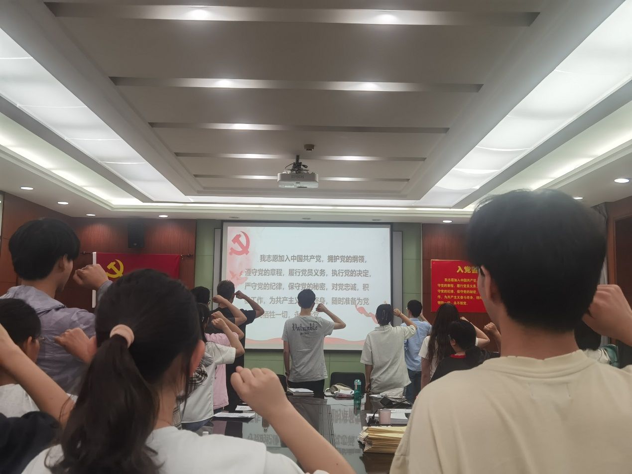 随后,在庄严的入党宣誓环节,预备党员们面向党旗,许下最诚挚的诺言。铿锵有力的誓词在会议室久久回荡,充分体现了学生预备党员的蓬勃朝气,传达出新时代学生党员“请党放心,强国有我”的时代最强音。