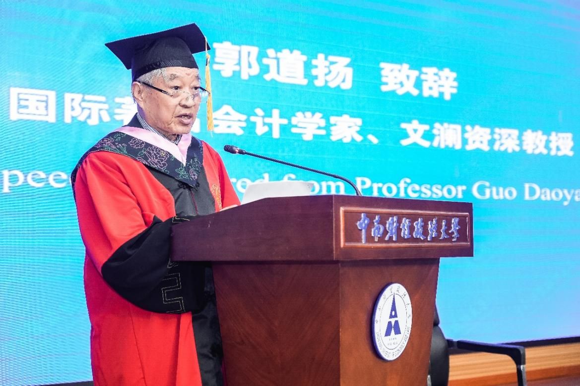 仪式第三项由郭道扬教授发表致辞。在致辞中,郭道扬教授高度评价了马西姆教授在会计史研究方面的卓越成就和杰出贡献。他特别指出,马西姆教授不仅在学术领域取得了卓越成就,还积极推动了中西方学术交流,对国际会计史学家大会的筹备和召开发挥了重要作用。