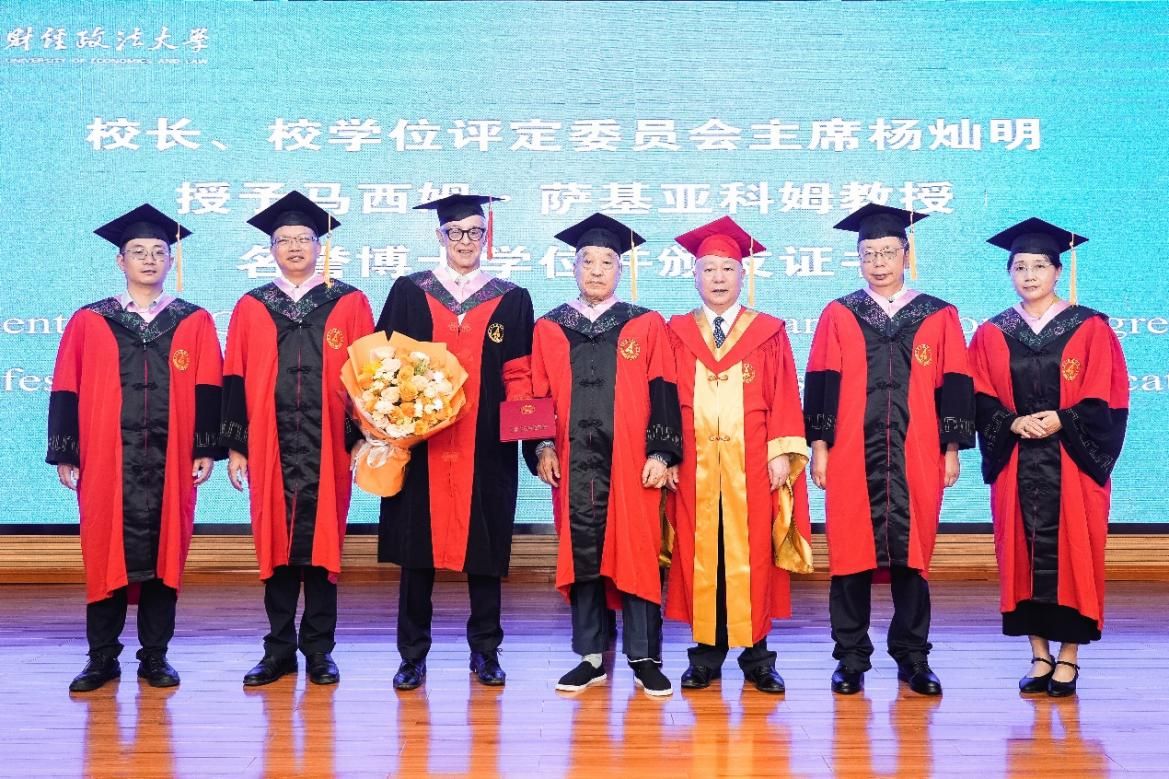 仪式最后,全体与会嘉宾合影留念,记录下这一重要时刻。至此,授予马西姆教授名誉博士仪式圆满结束。