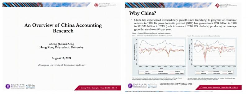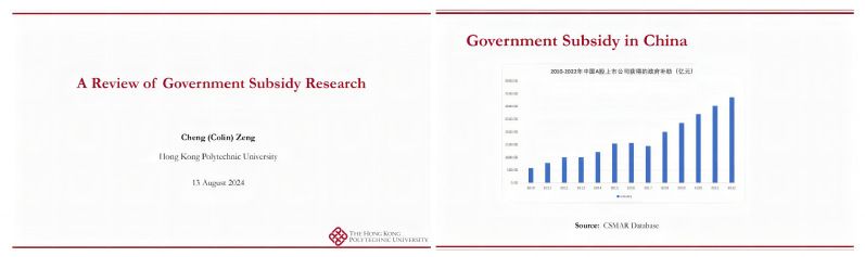 首日报告由香港理工大学会计金融学院曾诚教授主讲,围绕“An Overview of China Accounting Research”和“A Review of Government Subsidy Research”两个话题展开一场学术盛宴。