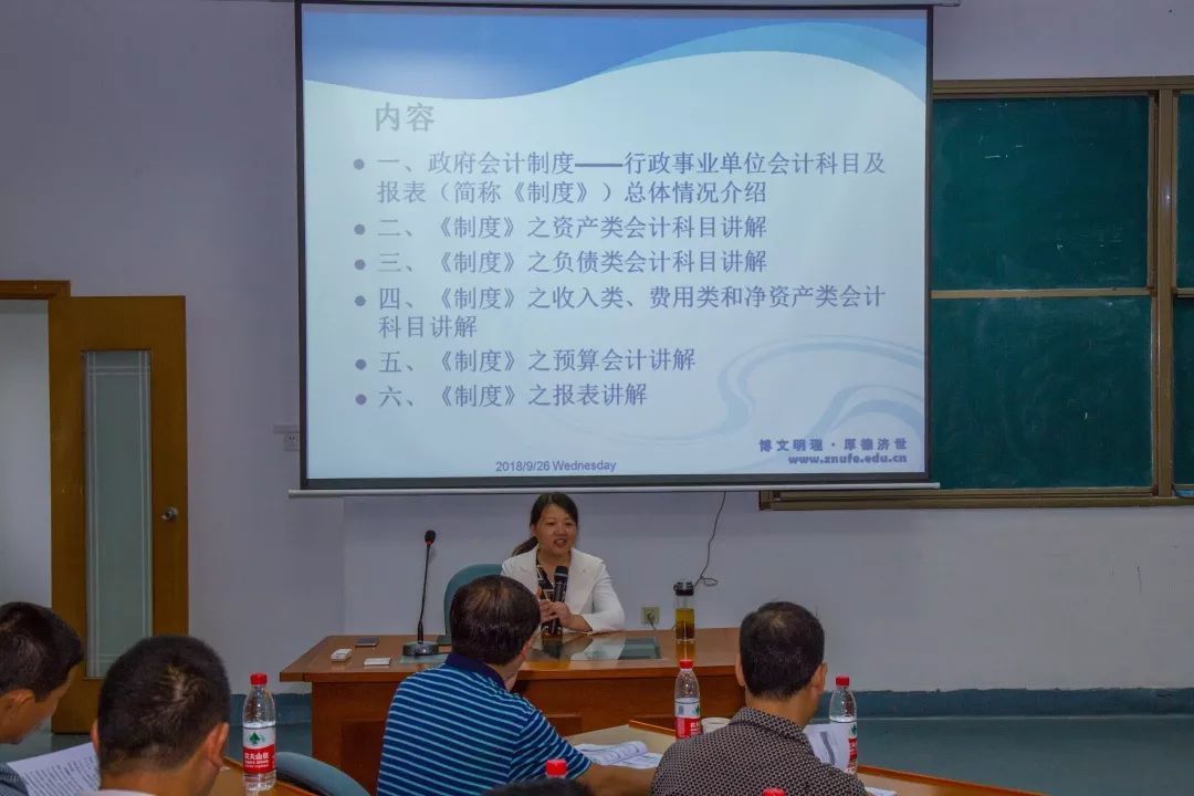 开班仪式后,正式拉开了培训帷幕。培训中心选派了王清刚教授、王银梅教授、杨国超副教授和刘宗劲副教授等分别就行政事业单位内部控制与风险管理、政府会计制度、新旧政府会计制度衔接及账套设置、基本会计准则解读、具体会计准则解读与实施、中国人心理与职场人际关系等专题作了精彩授课。